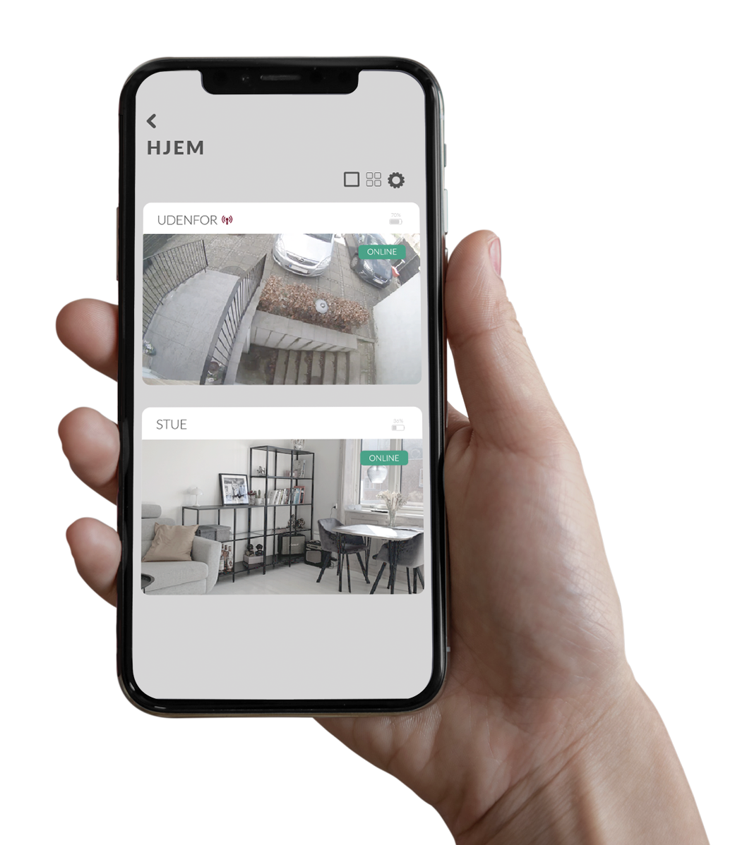 Når du tilgår kamera’et og ser en stream af din lokation, er bevægelsesalarm funktionen slået fra. For at du skal kunne forlade lokalet inden alarmen går, tager det mellem 15 og 60 sekunder, fra kamera’et skifter fra stream overvågning til bevægelsesmåling. Du kan se på din bruger app, når det sker. Samtidig får du også besked, hvis et kamera er offline enten bevist eller pgr. netværk eller andre årsager.