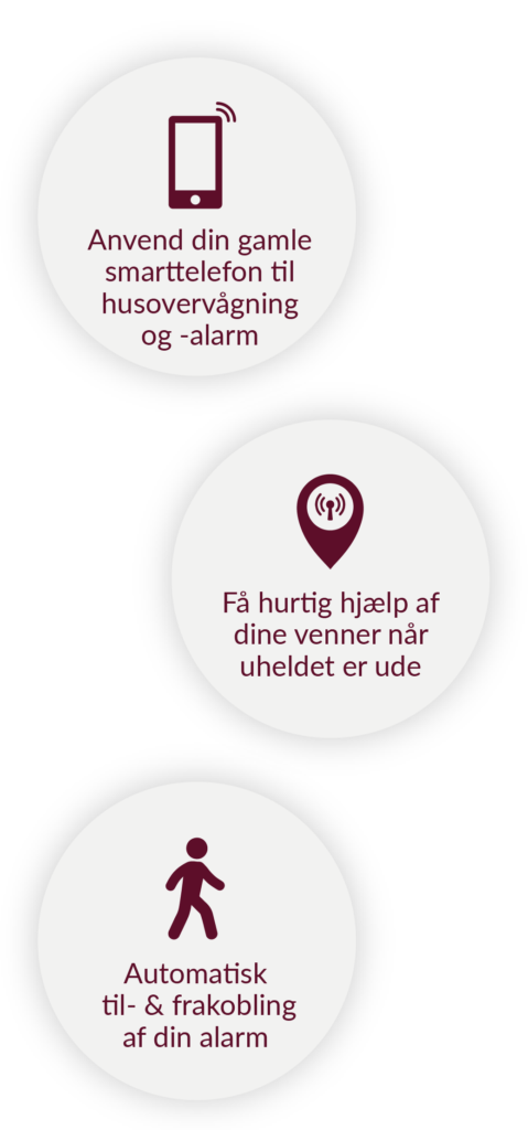 Brug din gamle telefon eller tablet som overvågnings- og alarmenhed i hjemmet. Overvågning er gratis og husalarmen kan prøves gratis i 30 dage.